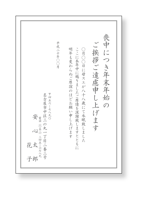 喪中はがき印刷(上質紙・銀線枠付)70枚セット【喪中ハガキ】【喪中葉書】【年賀欠礼はがき】